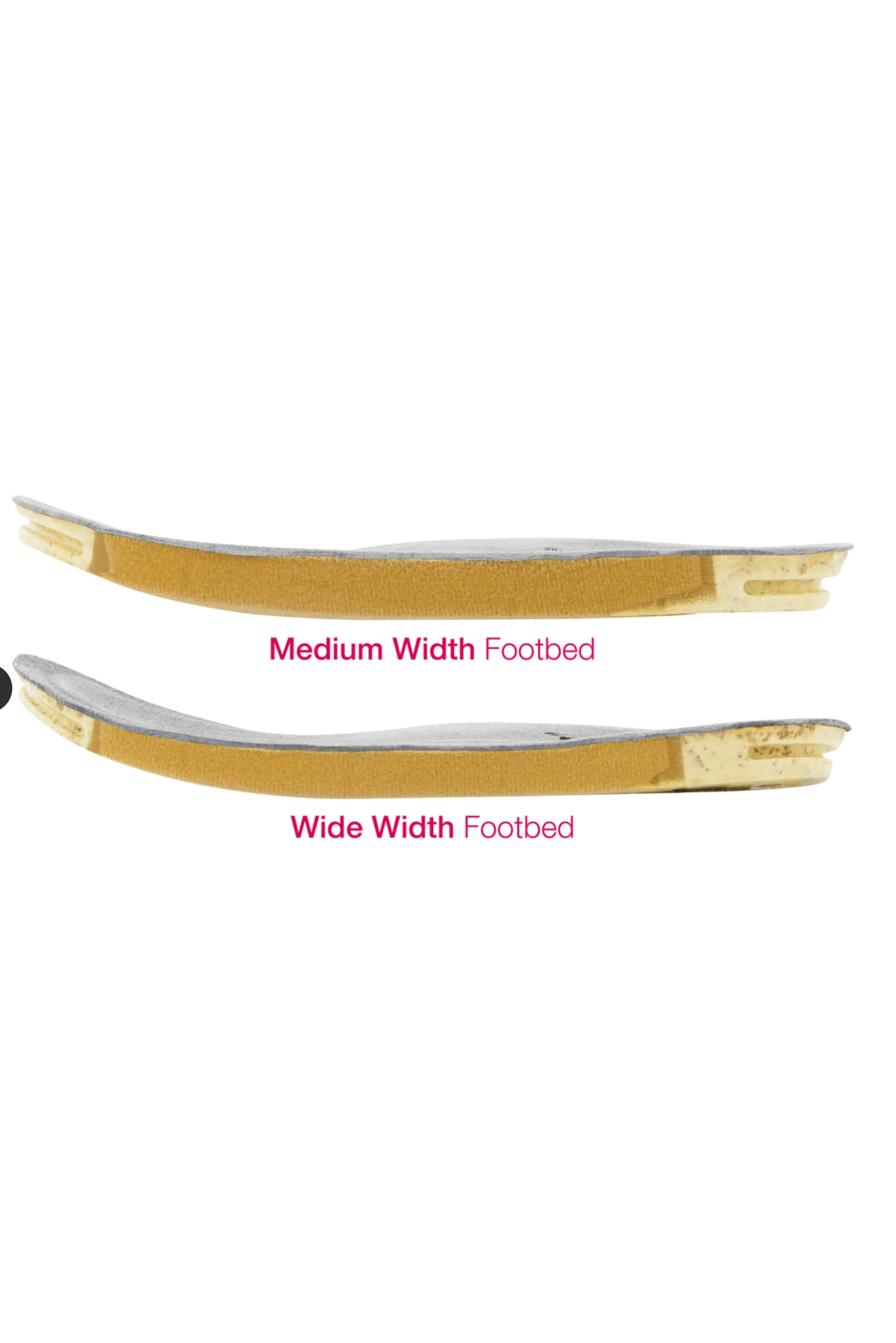 The patented Classic Footbed is comprised of specially formulated soft polyurethane, cork, and memory foam and ergonomically designed to mold to the natural contours of the feet. Alegria's Career Fashion footbeds also hold the same ergonomic design with a slender shape built specifically for career fashion wedge and heel styles. With the new Signature series footbeds, all the same elements are built in with more flexibility to allow for a bounce in your step while experiencing all day comfort.