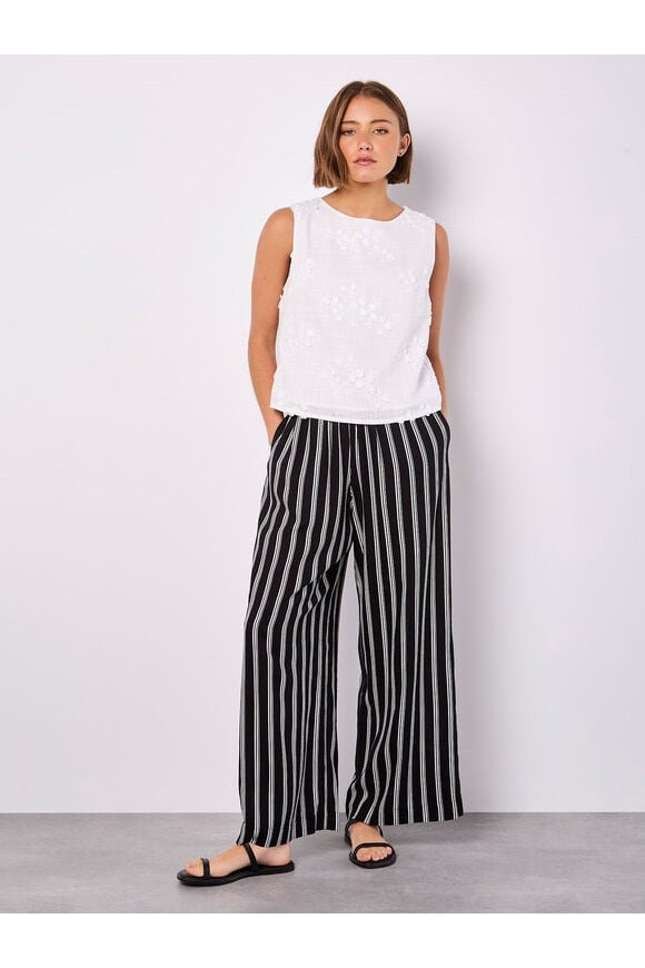 The APRICOT Stripe Wide Leg Trouser features a practical design with an elastic waist and convenient side pockets. The wide leg design ensures maximum comfort and ease of movement for all-day wear.