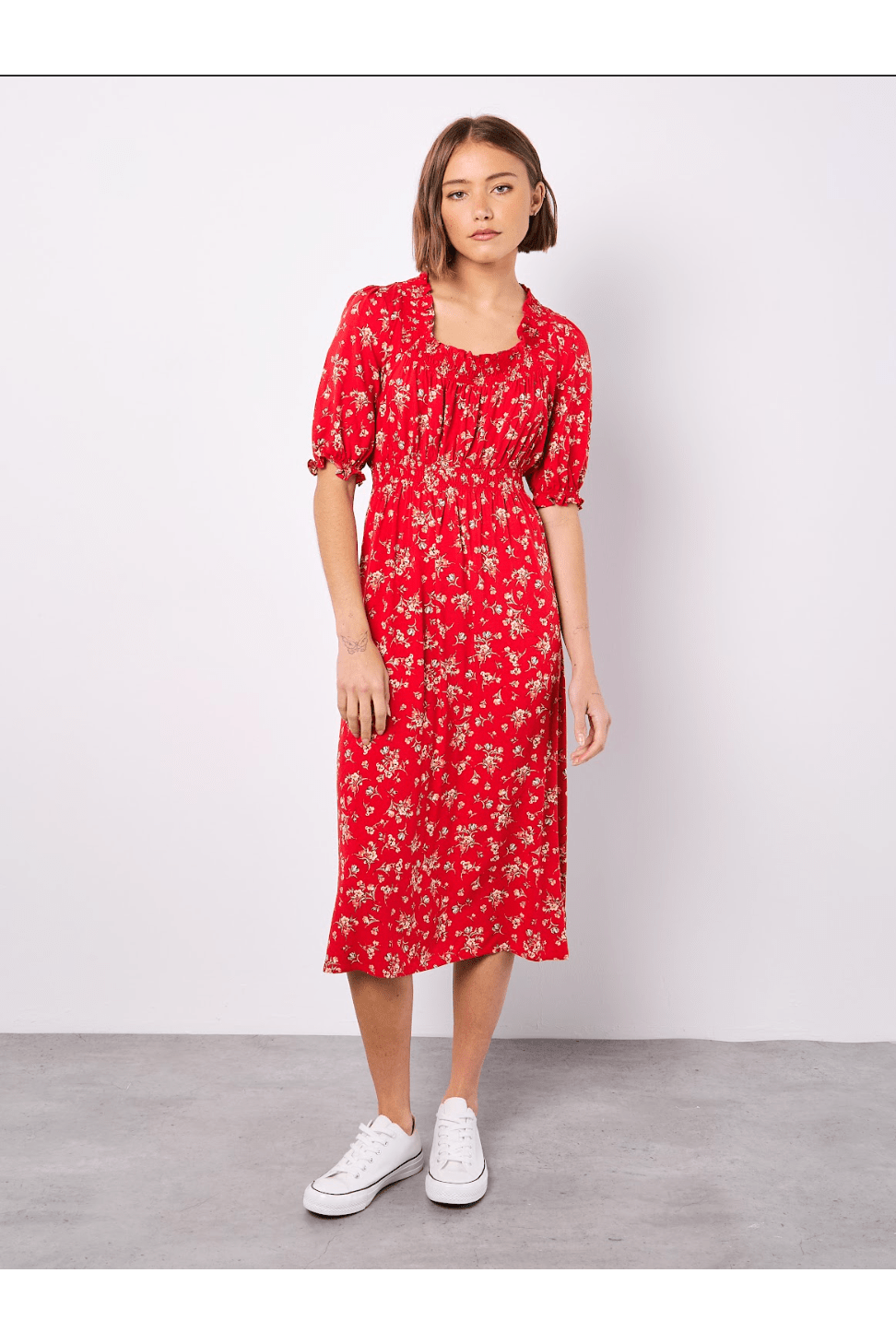 APRICOT Swirly Red Milkmaid Midi Dress *FINAL SALE*