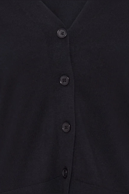 A button front cardigan with a straight silhouette with long sleeves and a clean, collarless neckline add to the minimalist, versatile design.