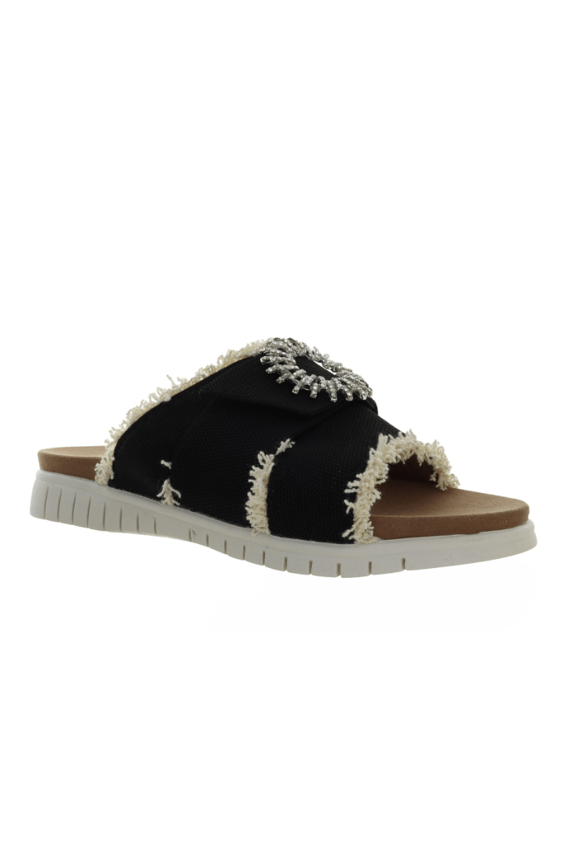 The Bernie Mev Tiara slide sandal blends relaxed comfort with a touch of refined style. Designed for easy everyday wear, the Tiara features a woven textile upper that adapts comfortably to the foot while maintaining a secure, supportive feel. This slip-on design makes the Tiara ideal for casual outings, travel, or warm-weather days when convenience matters. A cushioned footbed enhances underfoot comfort, helping reduce fatigue during extended use, while the flexible sole promotes natural movement with every step. Finished with a decorative upper accent, the Bernie Mev Tiara offers a stylish balance between laid-back design and everyday practicality. Whether paired with a casual or relaxed outfit, the Tiara is a versatile sandal designed to move comfortably through your day.