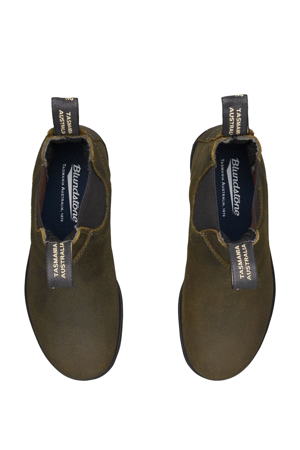 Soft, Supple DARK OLIVE WAXED SUEDE crafted the Blundstone way, with durability built in. Water-resistant, all-day Blundstone comfort.