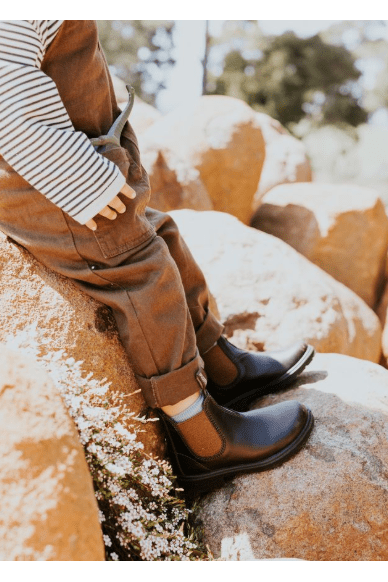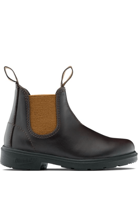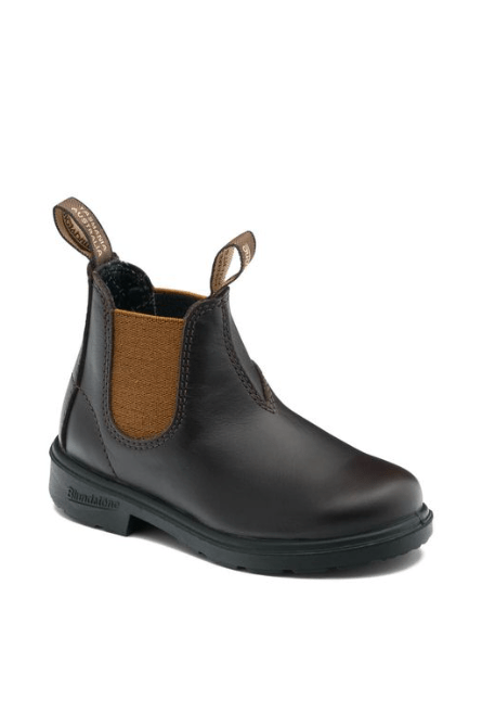 Fashion sense starts young and distinctive Blundstone Brown leather with Toffee Elastic is a stand out with fashionable kids. All-day breathable dry comfort, important on rainy days. Easy care leather and no laces to tangle with.