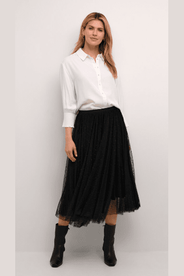 Irma A-Line Skirt in Pitch Black is a Beautiful Flowey Skirt that looks very Stylish with a high-heel Boot. Perfect look for Fall.