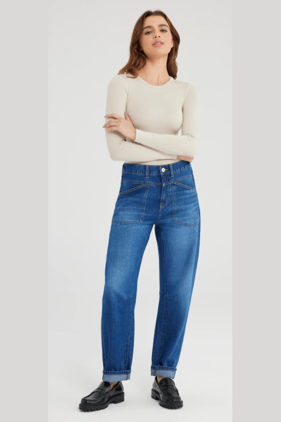 Selena mid waist ankle length drop crotch patch pocket jeans