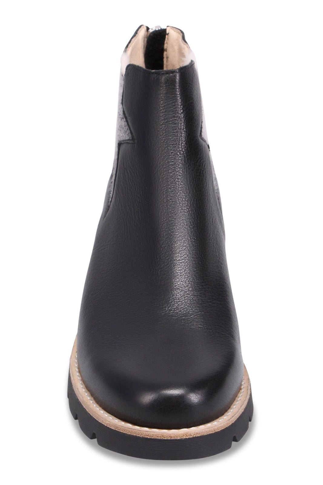 A woman's fashion-forward 100% leather ankle boot with leather-lining, will be your go to for the office or for a party.