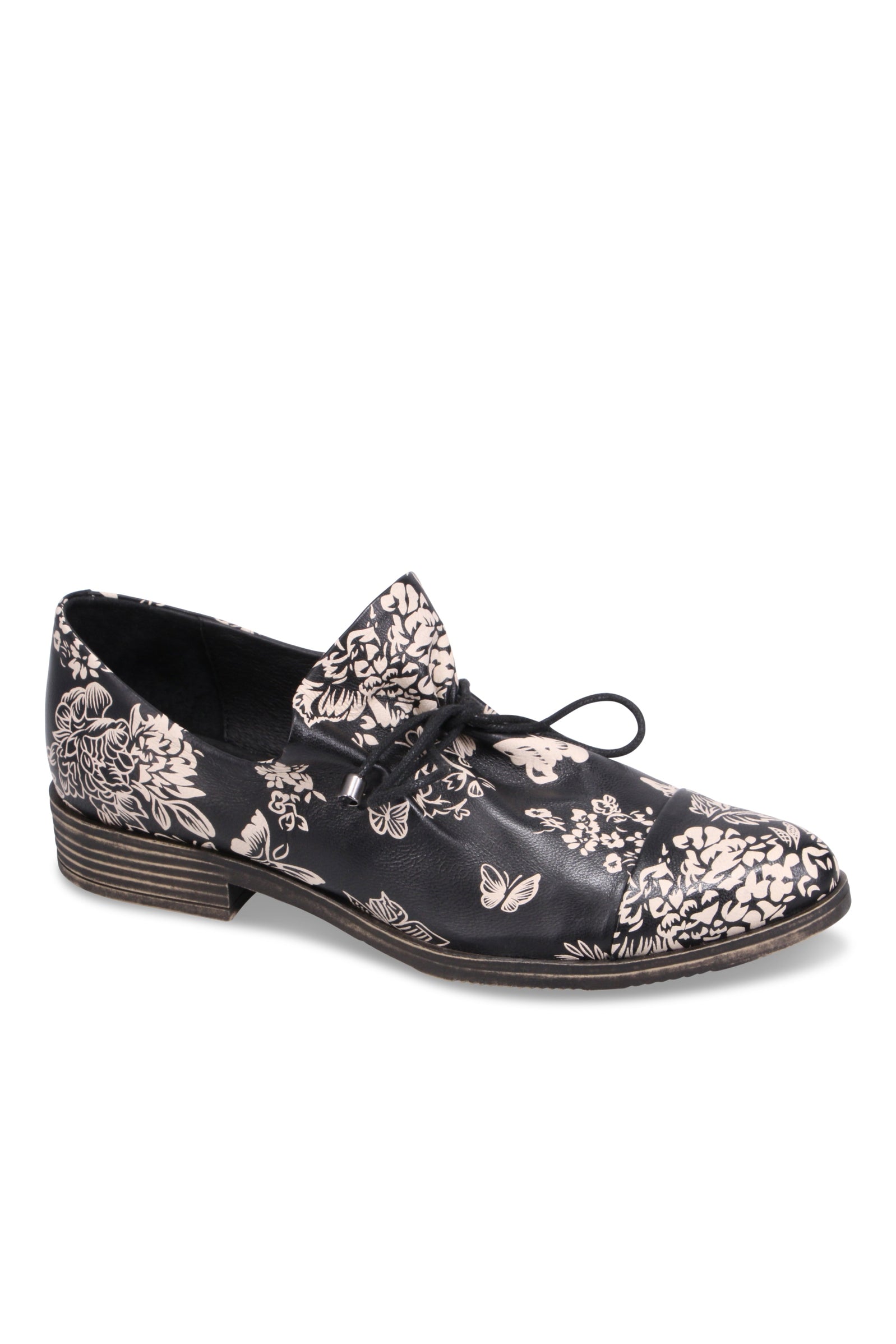 Crafted from soft, premium leather in a loafer-style silhouette, it slips on with a flexible one-piece tongue with adjustable decorative laces to hold it securely.