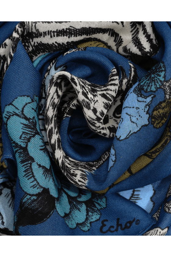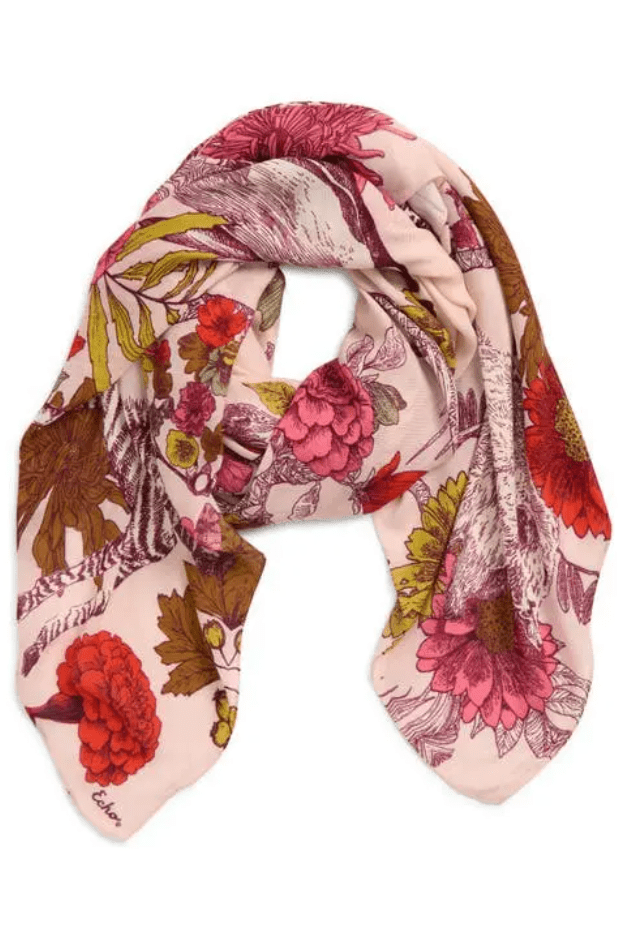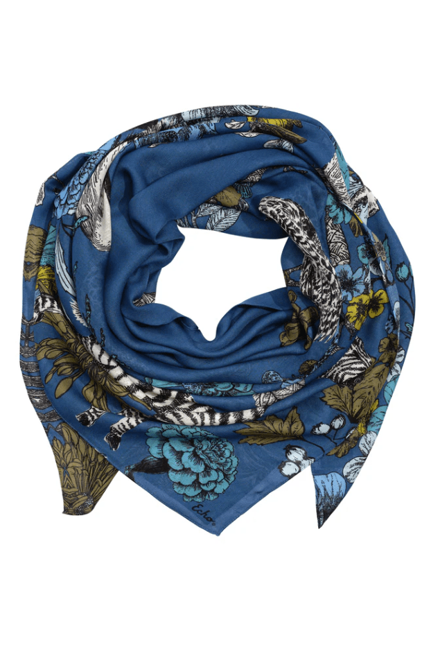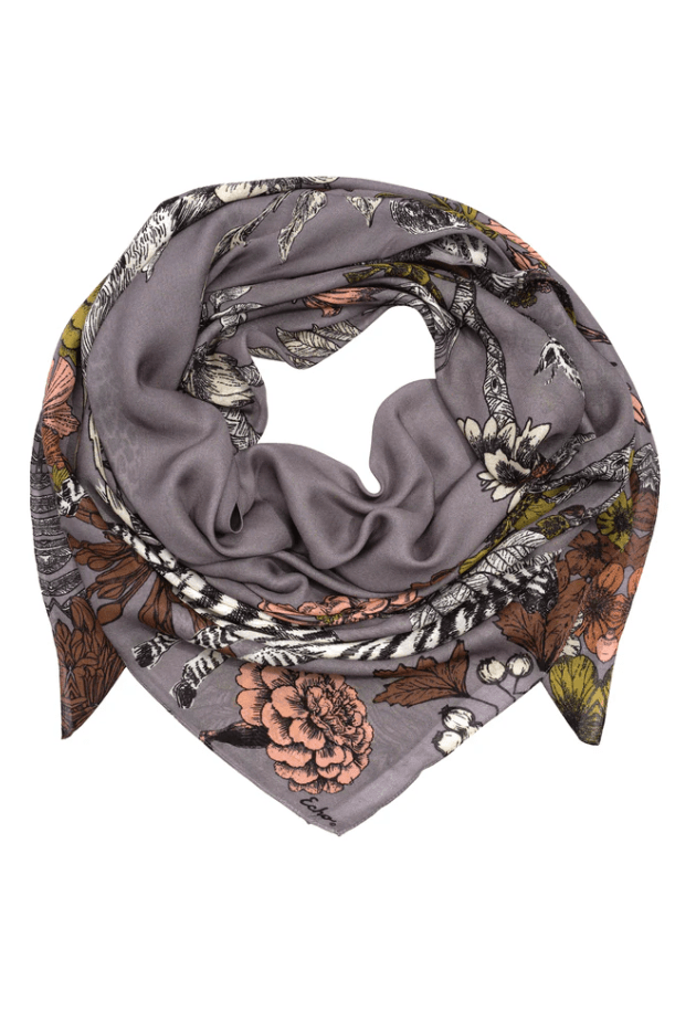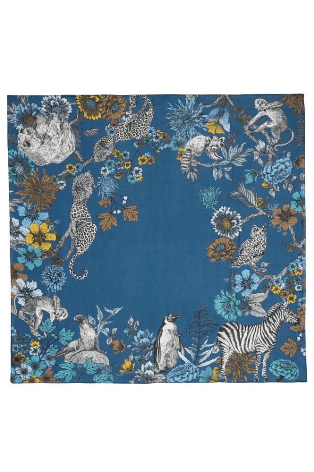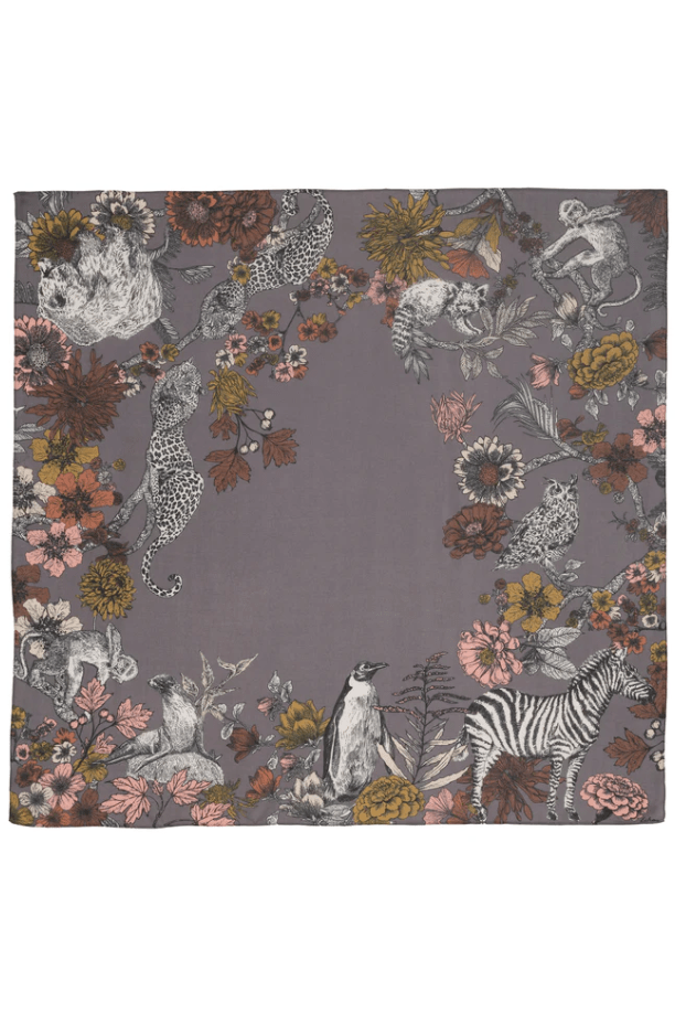 An oversized silk square inspired by the Central Park Zoo. In this playful design, the animals escape into a world of Echo flora and fauna—blending city wildlife with imagination and charm.