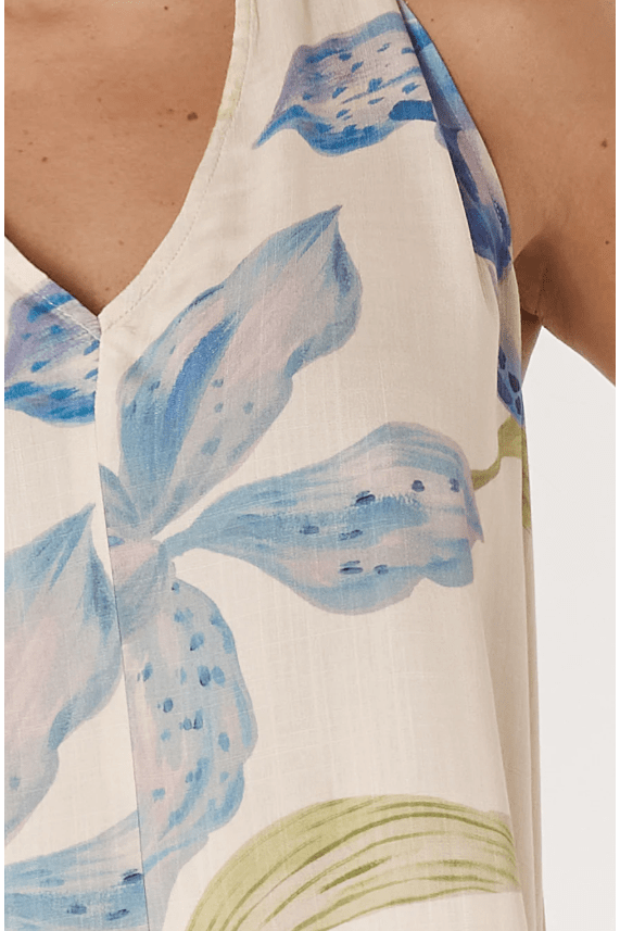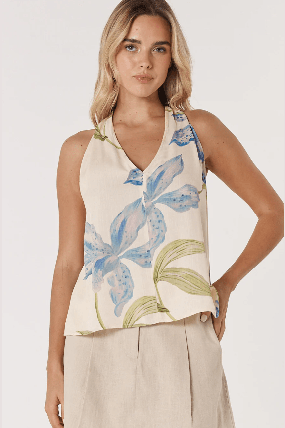 The Anthea Tank is simplicity refined. Designed in our exclusive print with a halter V-neckline, it offers a clean, elegant silhouette. Perfect for layering or paired with its coordinating pieces. A modern essential with effortless sophistication.