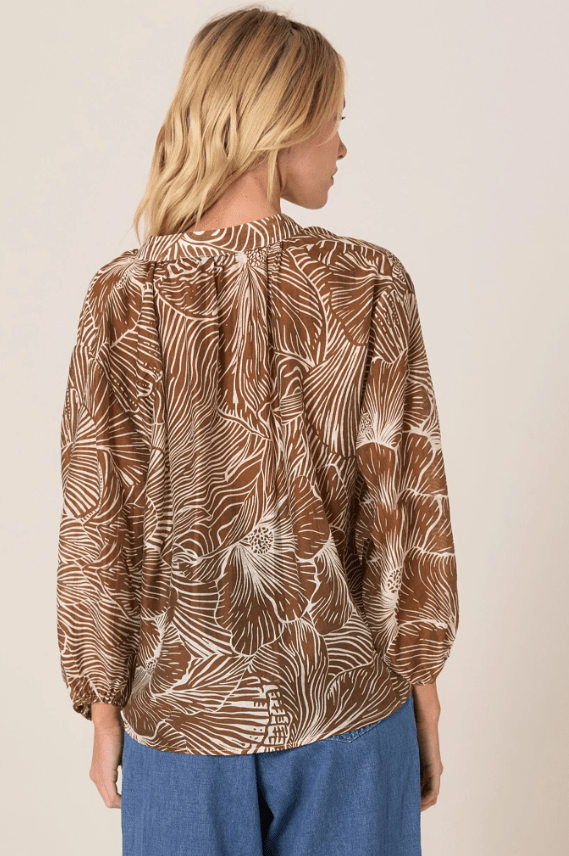 The Tallulah Split Neck Blouse is a refined piece in an exclusive botanical print. A soft stand collar and relaxed V-opening create an elevated, effortless neckline. 3/4 sleeves with gentle elastic cuffs add subtle volume with an elegant finish. A classic blouse designed to feel polished and sophisticated.