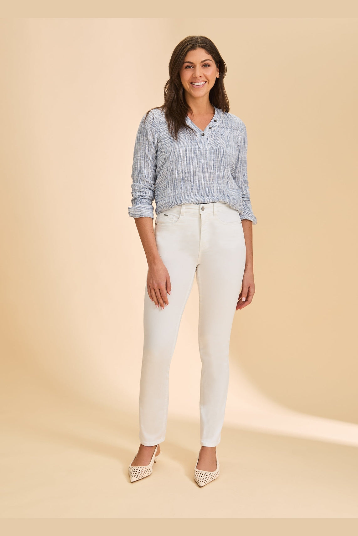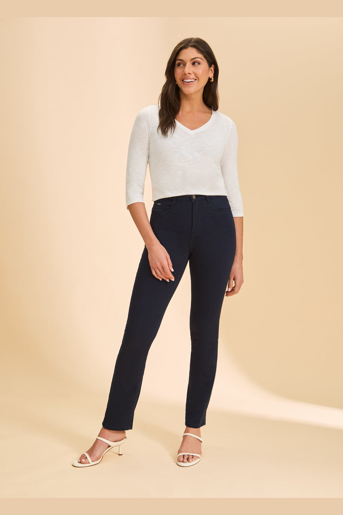 Suzanne Straight Leg jeans combine comfort with timeless style. The mid-rise fit and smooth waistband provide all-day ease, while the classic five-pocket design keeps things polished. A neutral wash pairs effortlessly with any outfit, making these your reliable everyday essential.