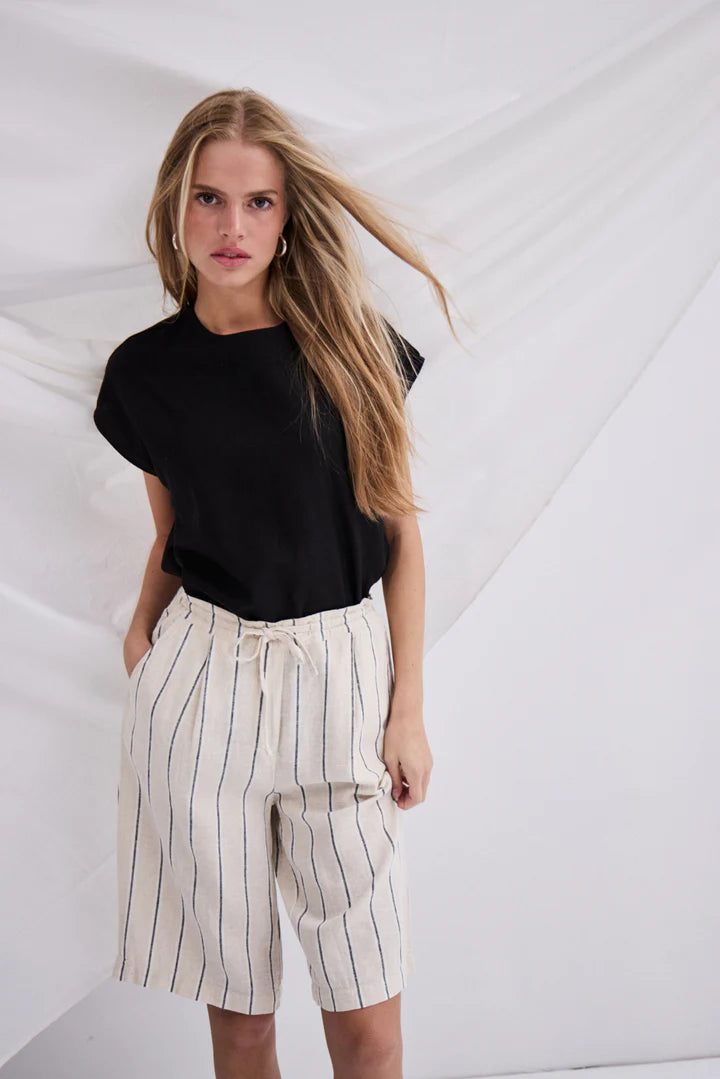 Long ecru stripe Linno shorts by Danish brand Ichi.