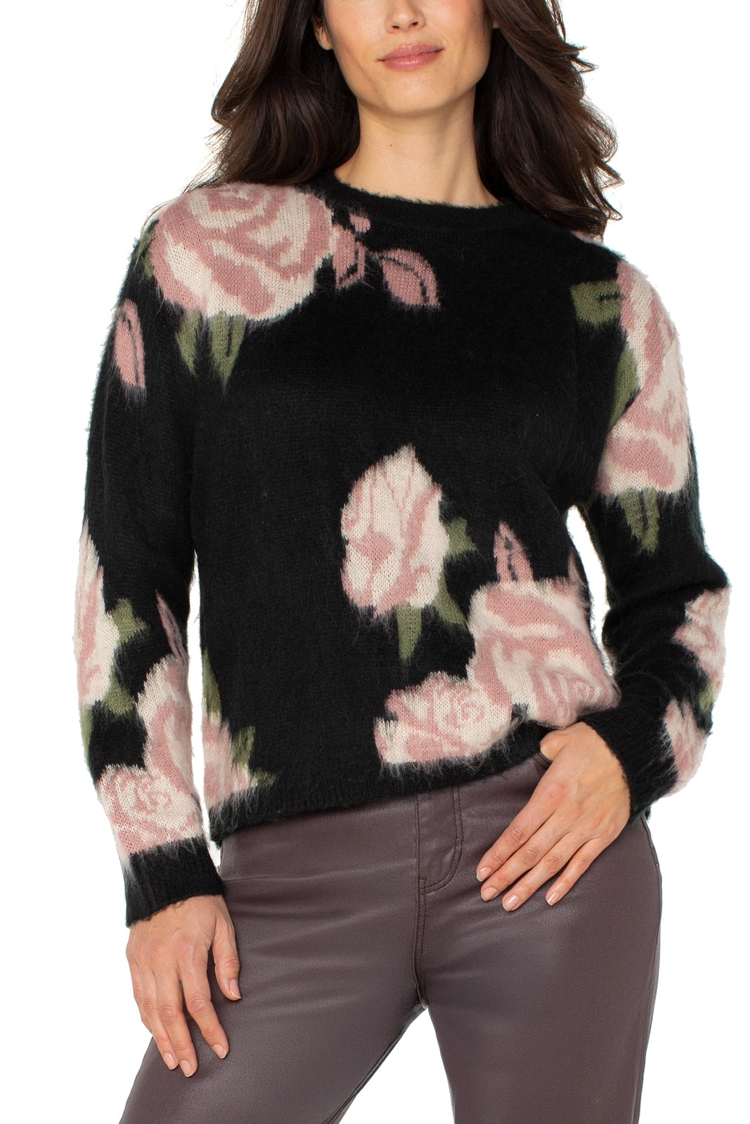 Soft structure meets bold print. This drop shoulder sweater is finished with ribbed trim and an exclusive floral design, blending everyday comfort with a statement-making edge
