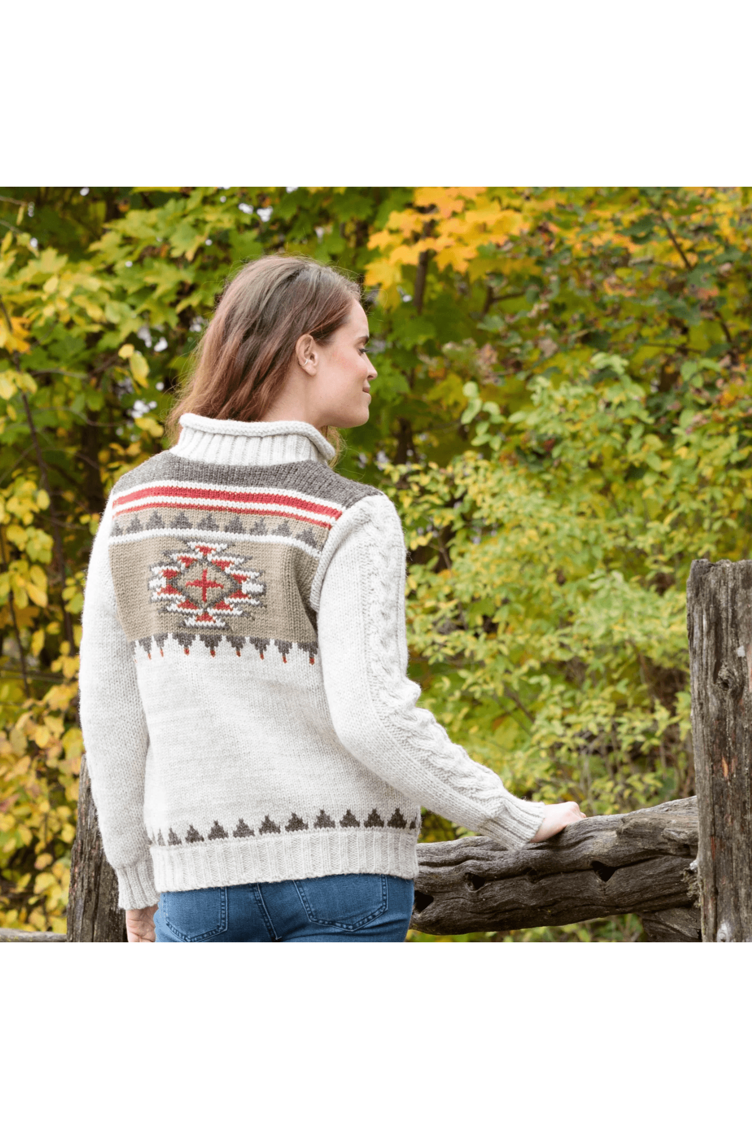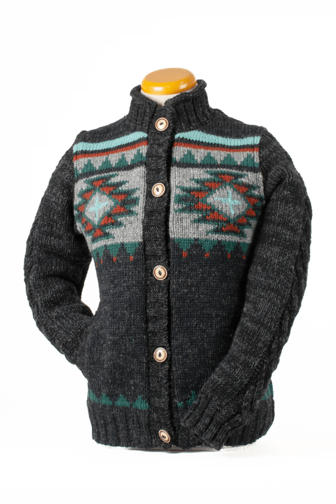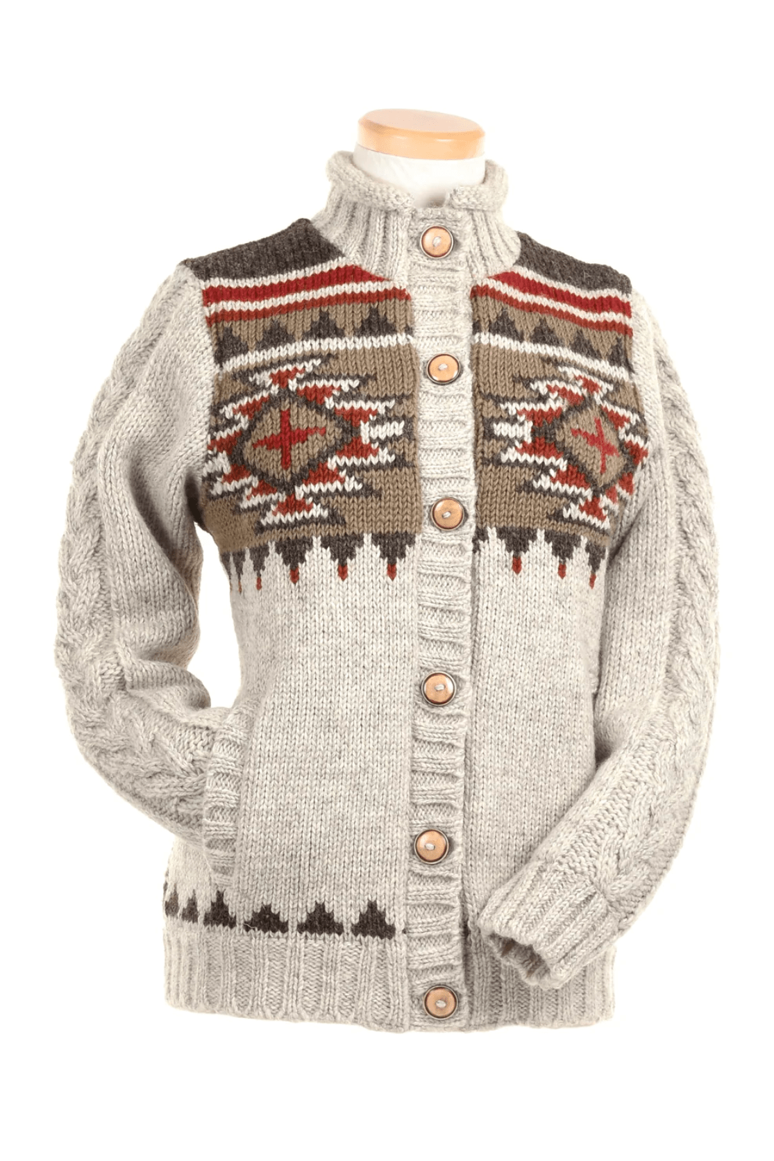 The Brush Creek Sweater combines warmth, rugged charm, and Western-inspired style. Crafted from double-ply knit wool and lined with cozy fleece, it ensures comfort even on the chilliest days. Featuring classic Southwestern motifs and intricate cable-knit patterns, this timeless piece captures the spirit of the open range. Finished with a flattering rolled collar and elegant bone-colored buttons, the Brush Creek Sweater blends sophistication with rustic appeal, making it a standout for any season.