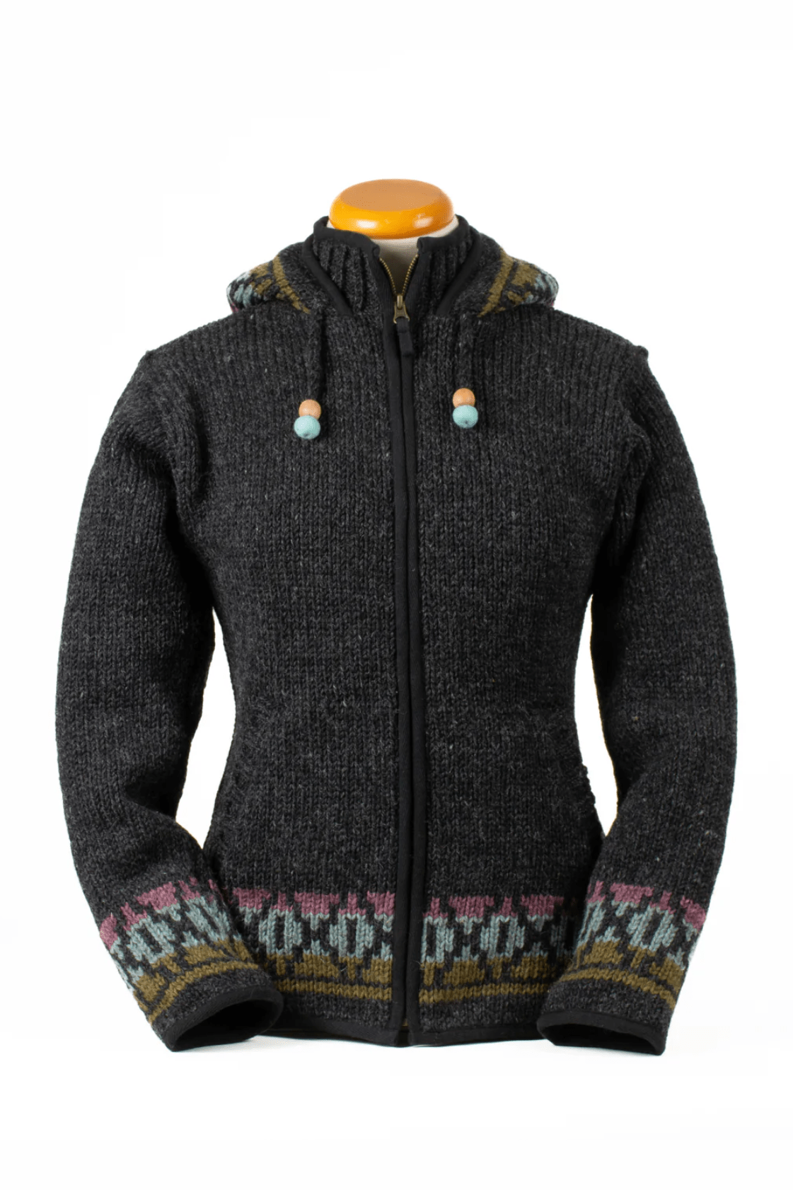 The Misty sweater jacket blends warmth and softness with timeless handcrafted detail. Made from thick wool and fully fleece lined, it’s designed to keep you cozy without needing extra layers. Delicate knit patterning at the hem, cuffs, and hood adds a gentle pop of color, while subtle tailoring at the waist creates a flattering, feminine silhouette. Finished with a full zip front, lined hood, and hand-finished drawcords, Misty is a beautiful balance of comfort, function, and charm.