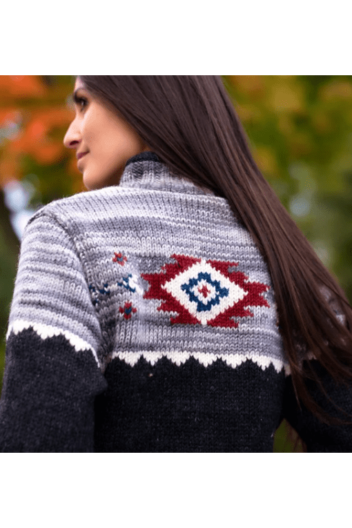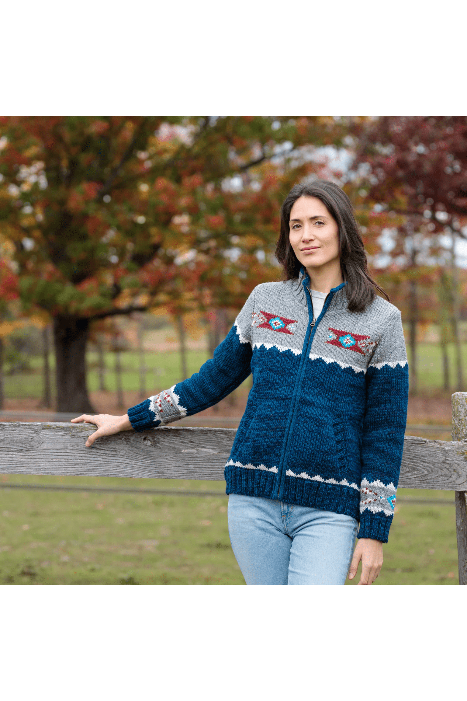 Embrace rugged Western charm with the Mustang Wool Sweater. This hand-knit cardigan, made from 100% wool, features a Nordic-inspired pattern with bold, geometric designs reminiscent of classic Western aesthetics. Fleece lining ensures ultimate warmth, while the zip closure and functional pockets make it a versatile piece for everyday wear. Whether you're out on the ranch or relaxing by the fire, this sweater offers timeless style and dependable comfort.