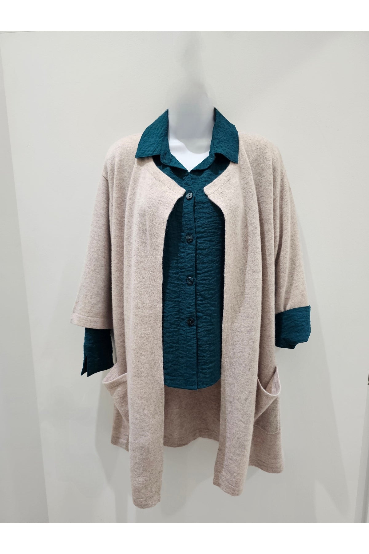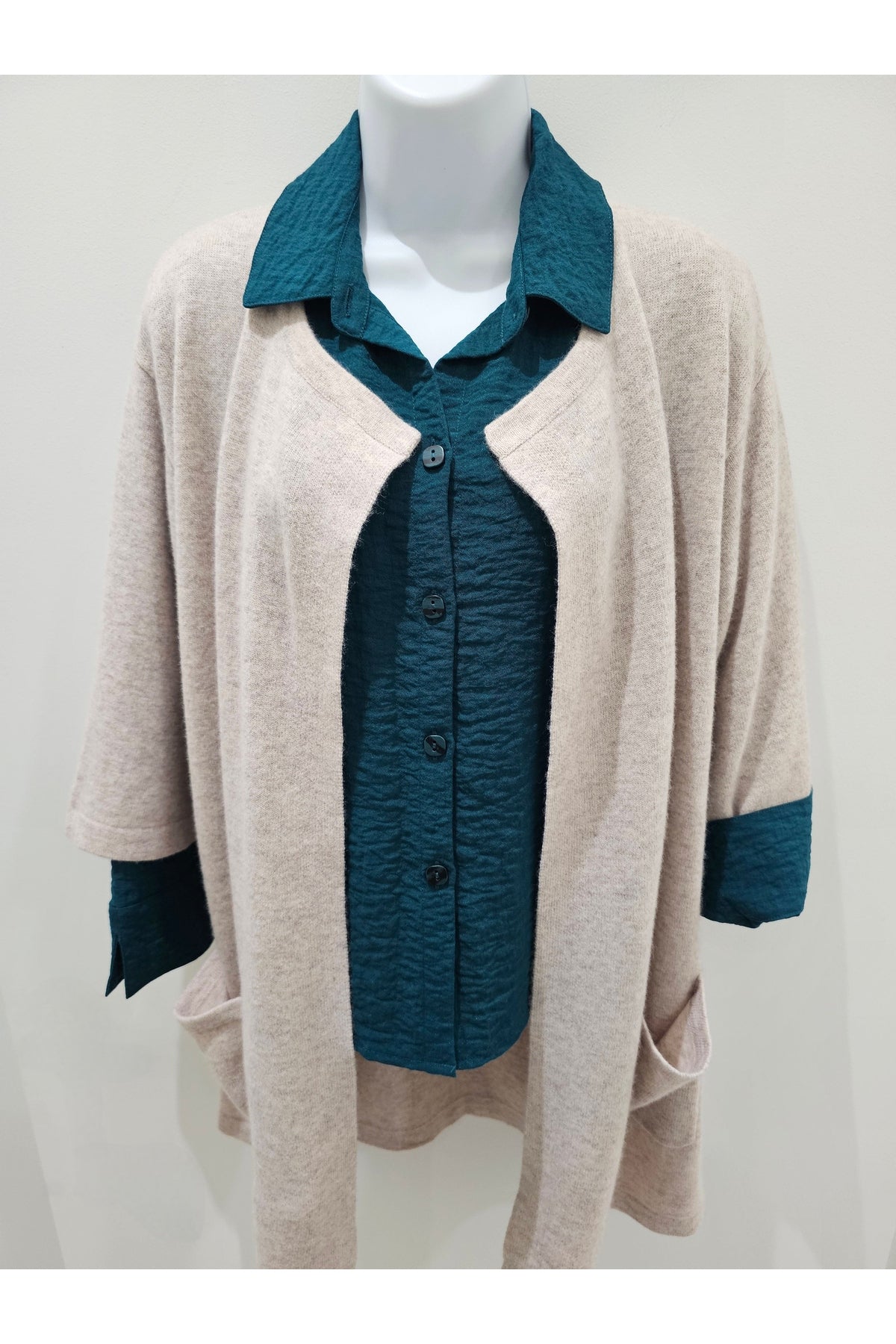 A blend of yak, merino and organic cotton, a very soft and cozy yarn that comes in modern and relaxed styles, 35% yak, 51% merino wool, 14% organic cotton