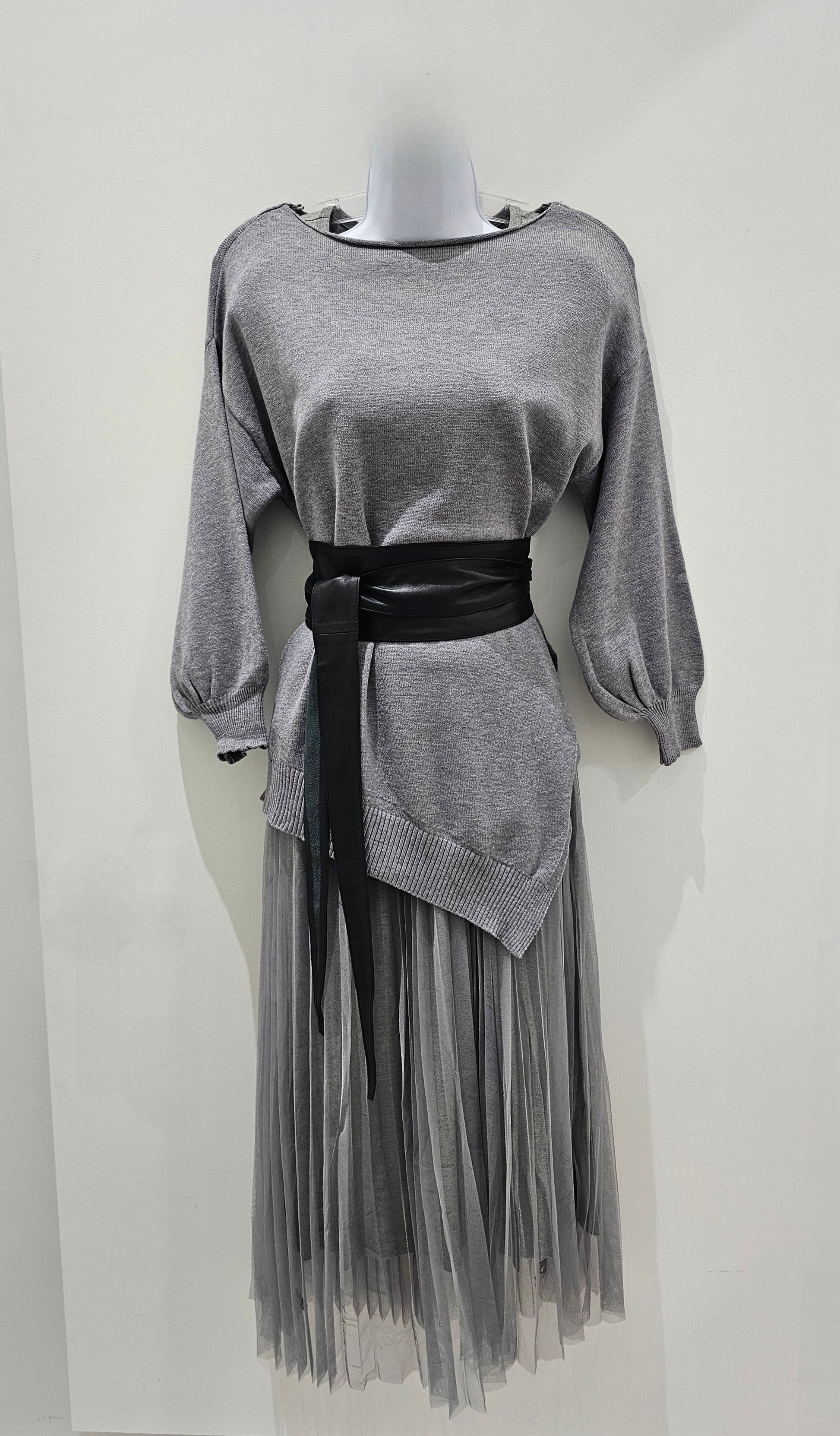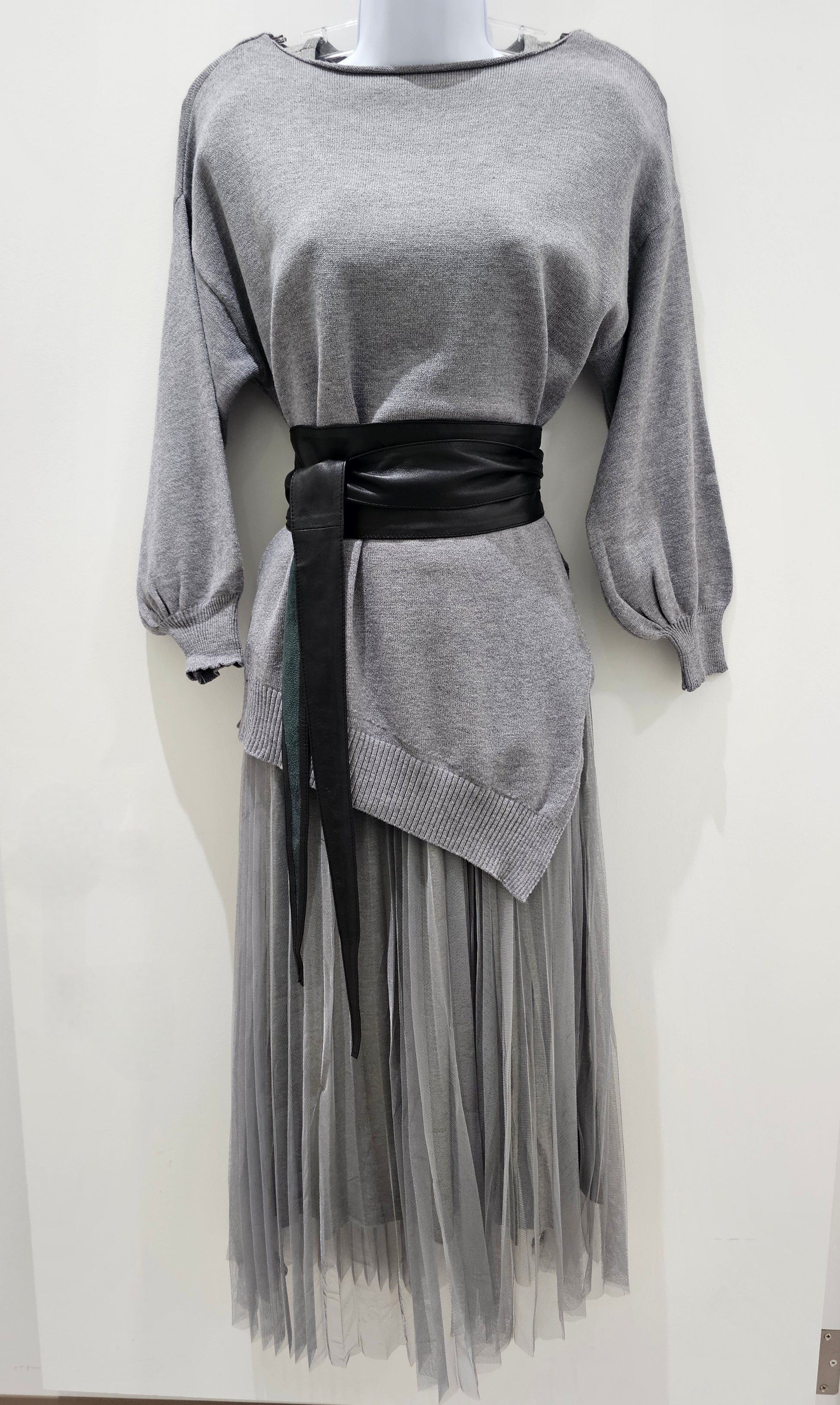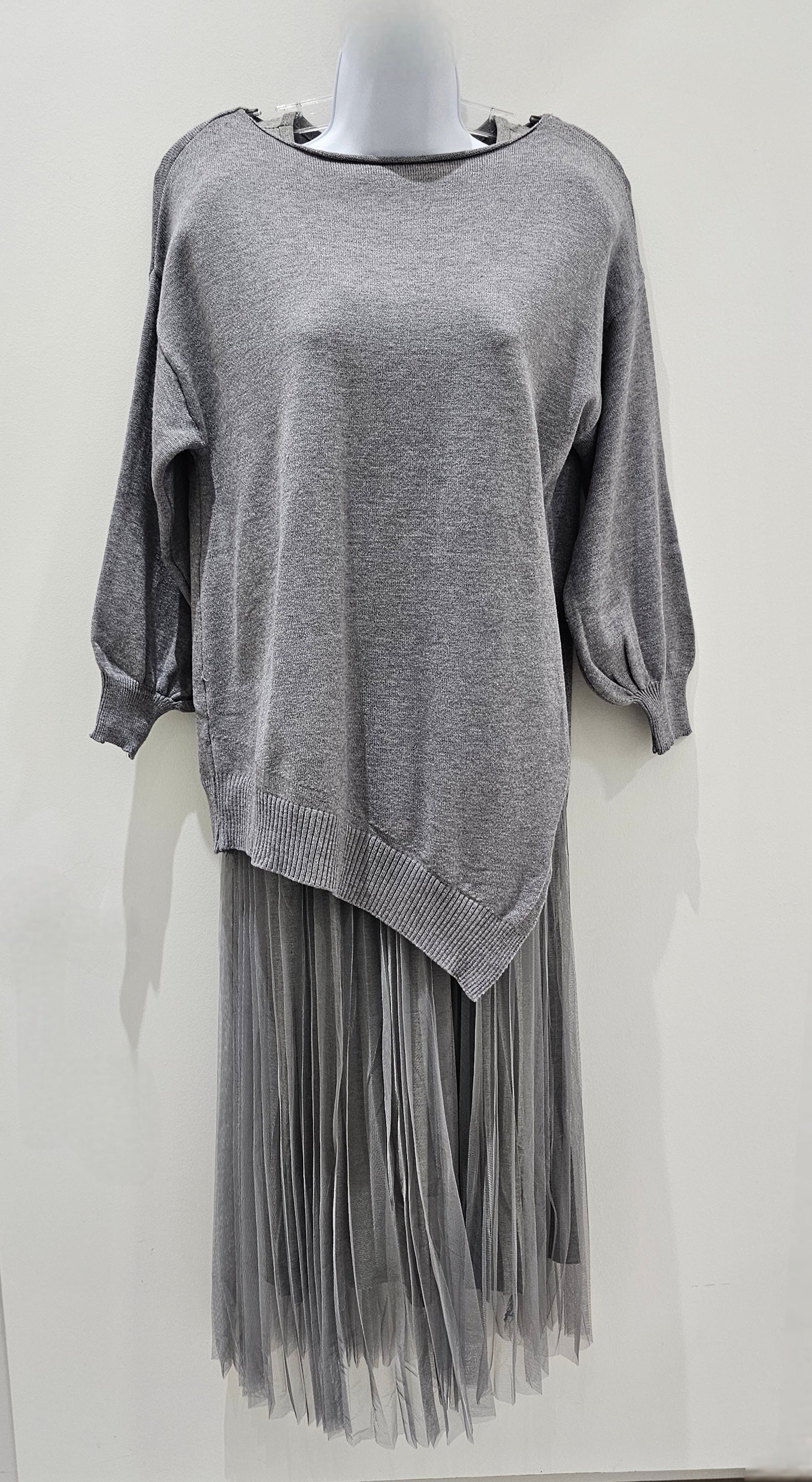 2 pieces: Pleated Dress w/slip & Asymmetrical Sweater combo