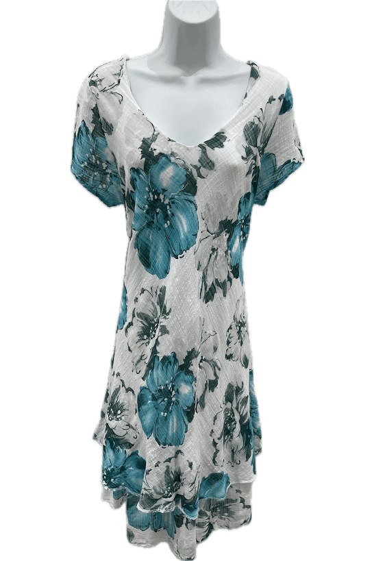 Flattering 2 tiered floral dress, cut on the bias with some nice stretch.