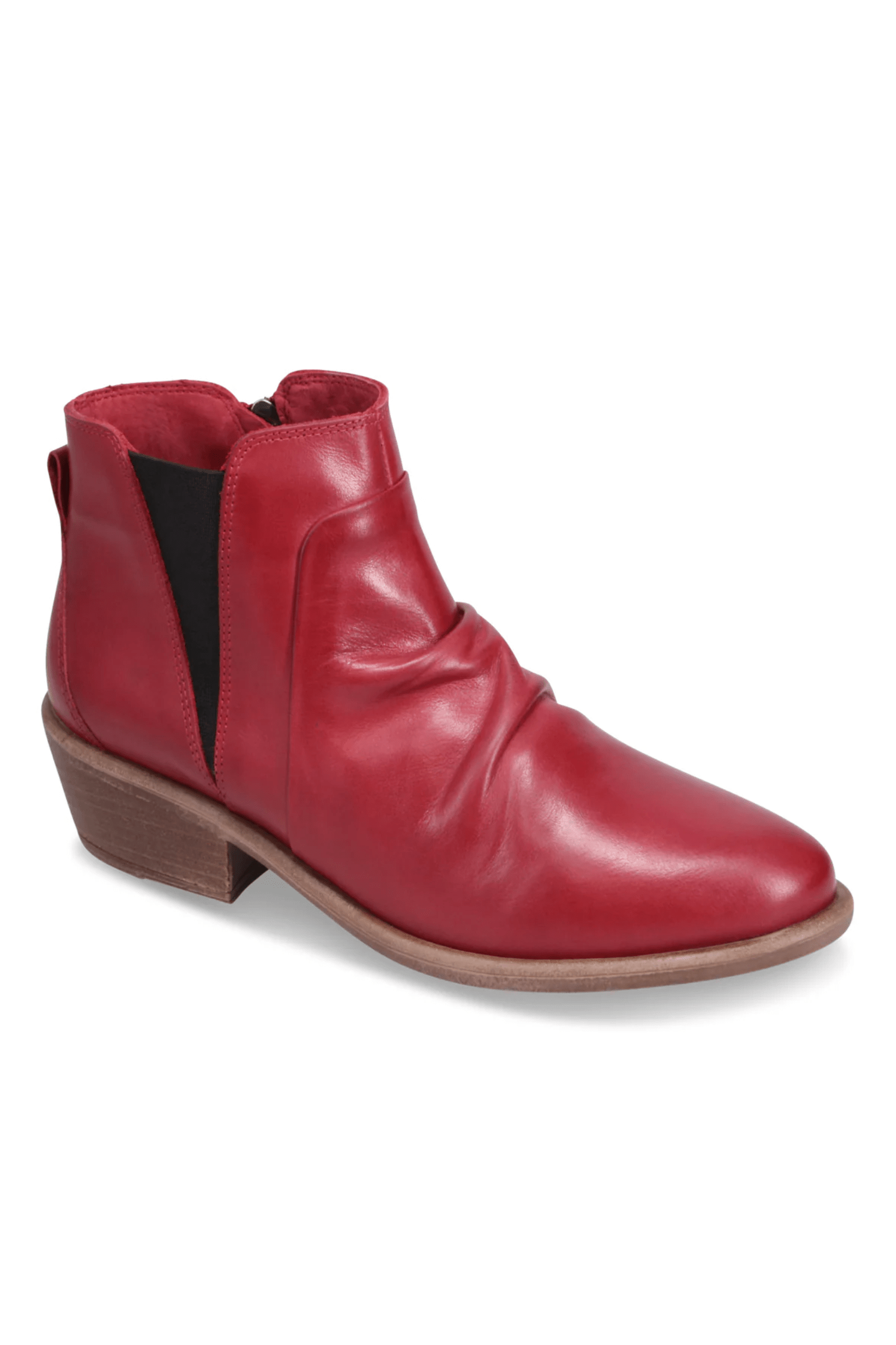 Bold style meets everyday comfort in the Carsyn boot. Crafted from smooth leather in striking hues, this ankle boot adds a confident pop of colour to any look. Thoughtfully designed with soft ruching across the front, side elastic panels, and a practical inner zipper, Carsyn is both fashionable and easy to wear. The stacked low heel and cushioned insole offer all-day support, making it perfect for pairing with jeans, skirts, or dresses.