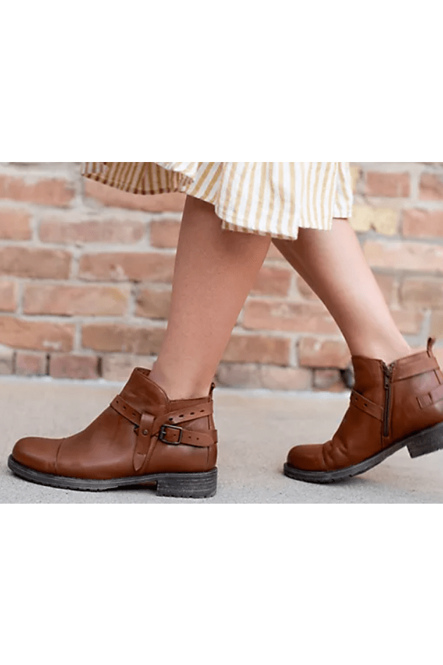 Pull together your look with these European leather buckled ankle boots -- crafted for all-day comfort and practical versatility. Slip them on in the morning with jeans or a skirt, and let the soft leather and cushioned footbed support your stride through work, errands, and dinner plans. An inner zip makes it easy to head out the door when friends, kids, or pups are waiting. From Miz Mooz.