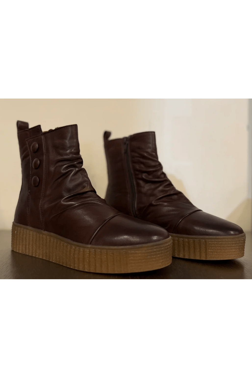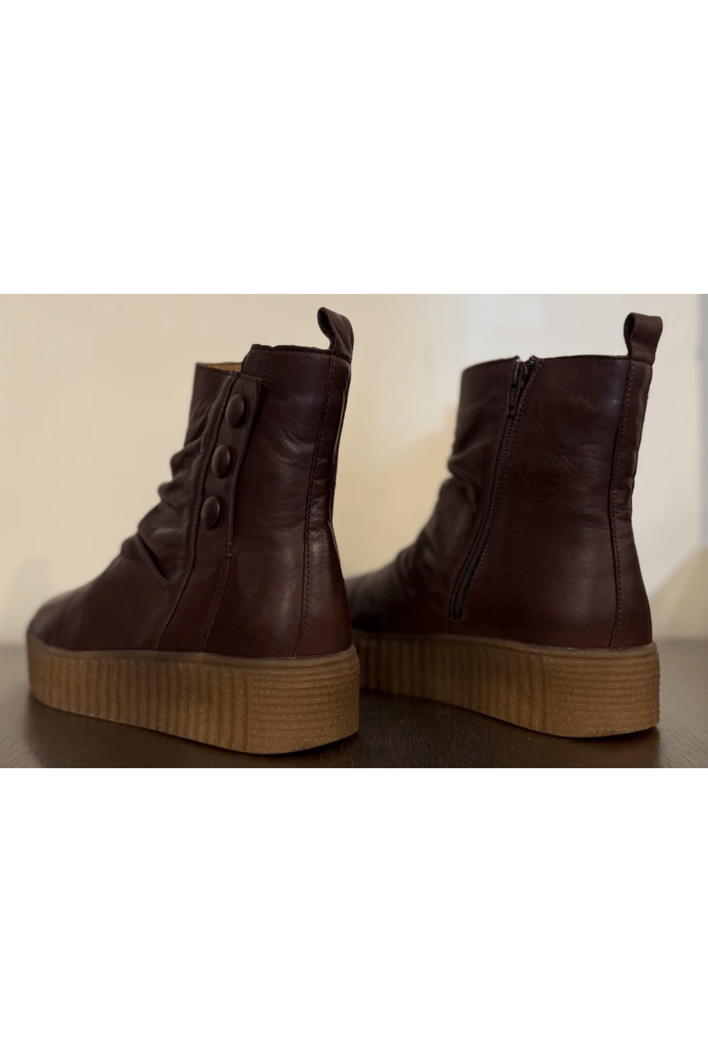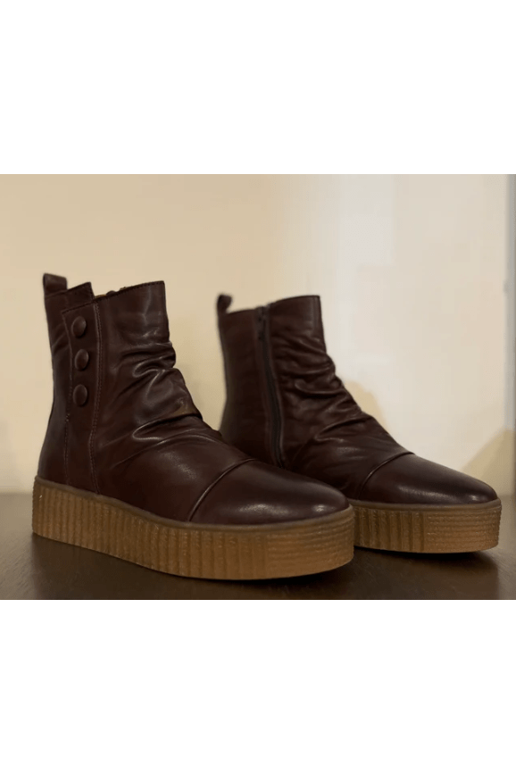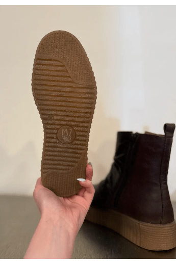 Brown zip up wedge boot from Miz Mooz