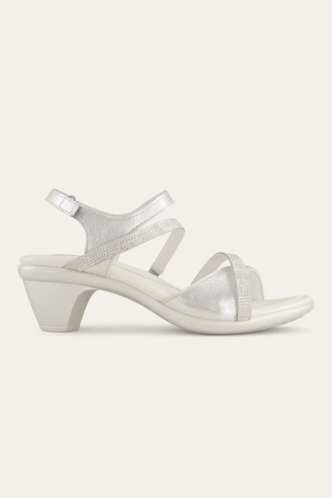 The Innovate is the perfect backstrap heel for all of your festive events! This sandal has a hook and loop backstrap and gore at the middle straps creating a custom fit. The Innovate has a padded front strap for ultimate comfort. The feminine rhinestone accents make this shoe stand out from the crowd. Naot's anatomic cork and latex footbed is wrapped in leather with a microfiber center to prevent slipping and molds to the shape of the foot with wear. The Avantgarde Collection features a TPR sole with a metal shank. This sole offers the look of a 2" heel without the feel.