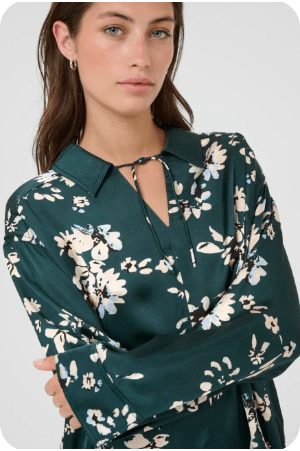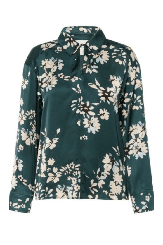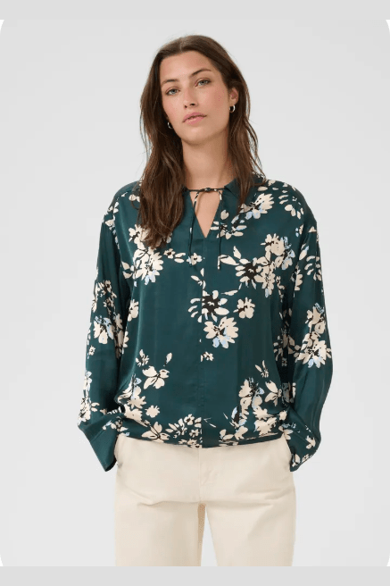 The Sheena blouse from Part Two brings a subtle statement with its rich floral print in a beautiful sea moss. Crafted from lightweight woven fabric in a soft viscose, it features a flattering V-neckline, relaxed fit, and long sleeves for easy styling. Perfect for wearing tucked into trousers for work or left loose over jeans for laid-back days. Easy to style with jeans, skirts, or tailored trousers for a feminine everyday look.