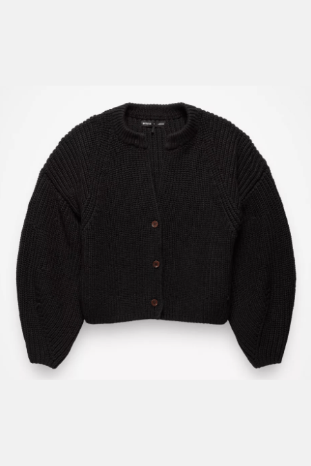 Button-up V-neck cardigan in a soft chunky knit that creates the perfect fall layer.