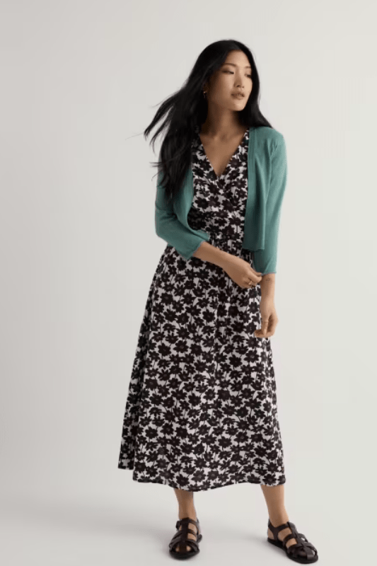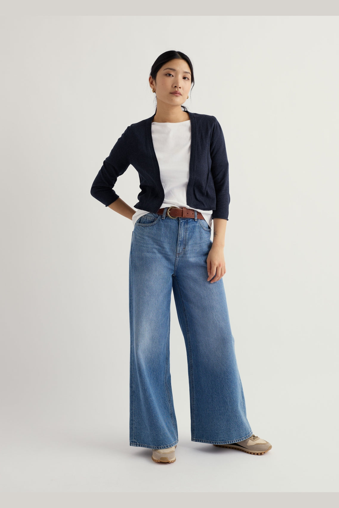 The perfect summer layer. Our Vanessa Cardigan is a lightweight, semi-fitted style that falls to the natural waist. Made from soft cotton with 3/4 length sleeves and a subtle rolled edge finish on the placket and cuffs for a feminine touch.