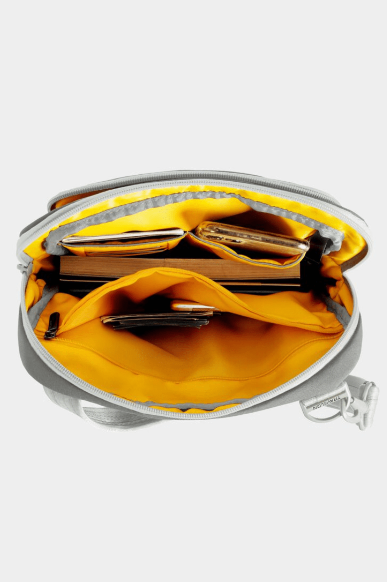 A modern Anti-Theft Slim Bag sized at 10"W x 11"H x 2.5"D, provides the convenience of a hands-free journey that makes bustling markets or an adventure hike stress-free. Blending style, durability, safety, premium organization, slash-resistant and lightweight performance materials (only 0.95 lbs), is a game changing experience. It’s Slash-resistant body and straps; Locking compartments; Lock-down hardware and RFID blocking prevents thieves from breaking into, or snatching, your bag and identity. A 1.75 cubic liter body with command center organization allows you to keep all your essentials within reach.
